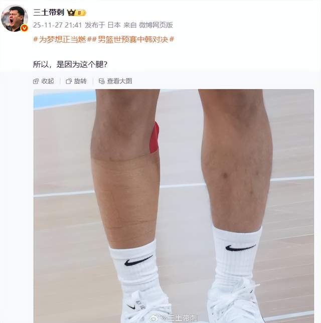 对此,媒体人三土带刺老师在社交平台晒图给出了答案,他晒出了赵睿在训练中的照片,赵睿的右腿缠着厚厚的绷带,甚至于在训练的视频中,可见赵睿一瘸一拐的模样。三土带刺老师写道:“所以,是因为这个腿?”